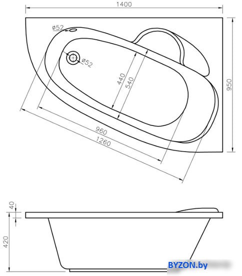 Код товара: 1856691 Рейтинг: 457 4| -43,07 угловая асимметричная, акрил, объем: 160 л