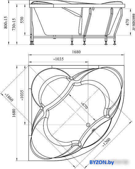 Ванна Radomir Филадельфия 168x168 - купить в Минске
