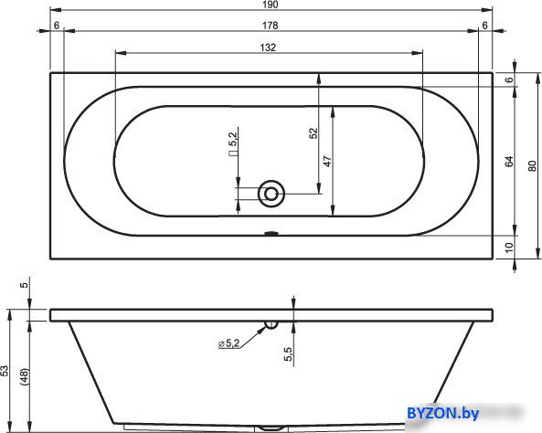 Ванна Riho Carolina 190x80 BB55005 (с ножками и экраном) - купить в Минске