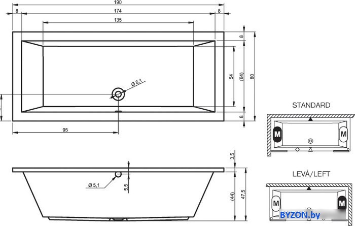 Код товара: 143550 Рейтинг: 754 3| прямая, акрил, объем: 315 л