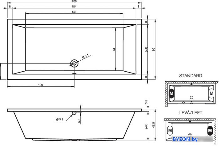 Ванна Riho Lusso 200x90 - купить в Минске