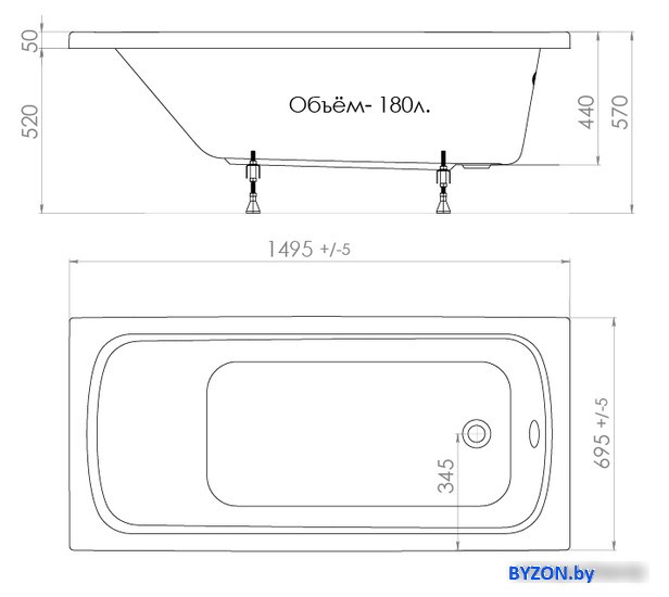 Ванна Triton Стандарт 150x70 (с каркасом и экраном) - купить в Минске