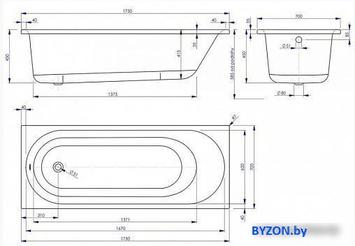 Ванна VagnerPlast Kasandra 175x70 (с каркасом) - купить в Минске
