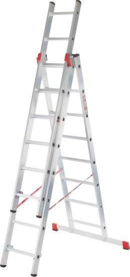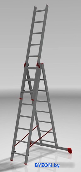 | Информация | - максимальная прочность и надёжность при небольшом весе изделия- стойки и ступени изготовлены из прессованного профиля- многократная развальцовка в соединении ступеней со стойками обеспечивает высокую прочность и долговечность- рифлёные ступени с шагом 260 мм для безопасного подъёма и спуска- направляющие кронштейны из оцинкованной стали 4 мм, надёжно удерживают выдвижную секцию во всех рабочих положениях- стальные зацепы с автоматическим фиксатором- широкая поперечная траверса обеспечивает высокую устойчивость- надёжно закреплённые на стойках и траверсе опорные наконечники изготовлены из двухкомпонентного пластика, где жесткий компонент отвечает за надежность крепления, а мягкий препятствует скольжению лестницы- верхняя секция легко вынимается и устанавливается и может служить отдельной приставной лестницей |