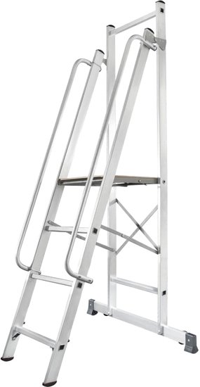 Код товара: 3920421 Рейтинг: 91 18| -4,18 лестница-стремянка, 4 ступени, алюминий, верхняя площадка, поручни