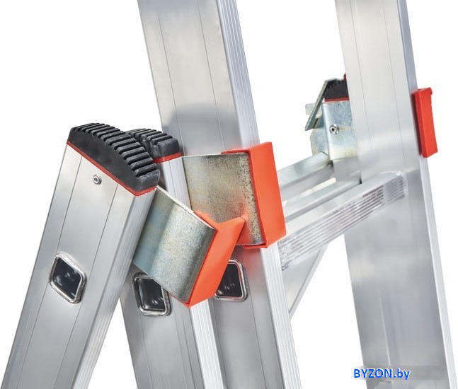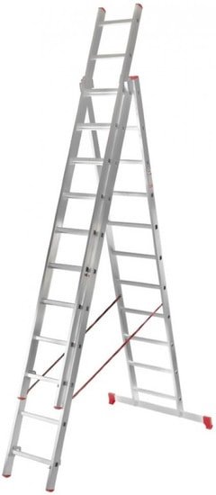 | Информация | - максимальная прочность и надёжность при небольшом весе изделия - стойки и ступени изготовлены из прессованного профиля - многократная развальцовка в соединении ступеней со стойками обеспечивает высокую прочность и долговечность - рифлёные ступени с шагом 260 мм для безопасного подъёма и спуска - направляющие кронштейны из оцинкованной стали 4 мм, надёжно удерживают выдвижную секцию во всех рабочих положениях - стальные зацепы с автоматическим фиксатором - широкая поперечная траверса обеспечивает высокую устойчивость - надёжно закреплённые на стойках и траверсе опорные наконечники изготовлены из двухкомпонентного пластика, где жесткий компонент отвечает за надежность крепления, а мягкий препятствует скольжению лестницы - верхняя секция легко вынимается и устанавливается и может служить отдельной приставной лестницей |