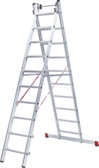 | Информация | - универсальная двухсекционная лестница- верхняя секция снабжена колёсами для удобства раздвижения по стене- прочные и атмосфероустойчивые ремни с вшитыми крепёжными петлями- дополнительные алюминиевые жёсткие стяжки- стойки и ступени изготовлены из прессованного профиля- многократная развальцовка в соединении ступеней со стойками обеспечивает высокую прочность и долговечность- рифлёные ступени 30 мм с шагом 260 мм для безопасного подъёма и спуска- пластиковые насадки на ступени и в кронштейнах для удобства эксплуатации- направляющие кронштейны из экструдированного профиля надёжно удерживают выдвижную секцию во всех рабочих положениях- 4 зацепа из эструдированного профиля с автоматическим фиксатором- широкая поперечная траверса обеспечивает высокую устойчивость- надёжно закреплённые на стойках и траверсе опорные наконечники изготовлены из двухкомпонентного пластика, где жесткий компонент отвечает за надежность крепления, а мягкий препятствует скольжению лестницы.- долговечна и полностью ремонтопригодна |