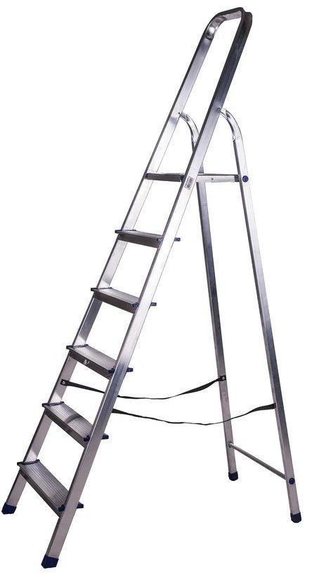Код товара: 4667859 Рейтинг: 68 2| -44,74 лестница-стремянка, 6 ступеней, алюминий, верхняя площадка