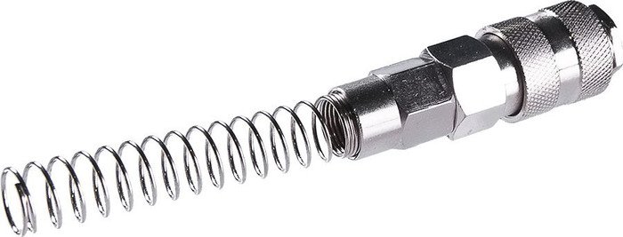 Информация | Разъемное соединение рапид-пружинка для подключения компрессора через шланг к пневмоинструменту. Пружина не позволяет шлангу деформироваться и перегибаться в месте соединения. |